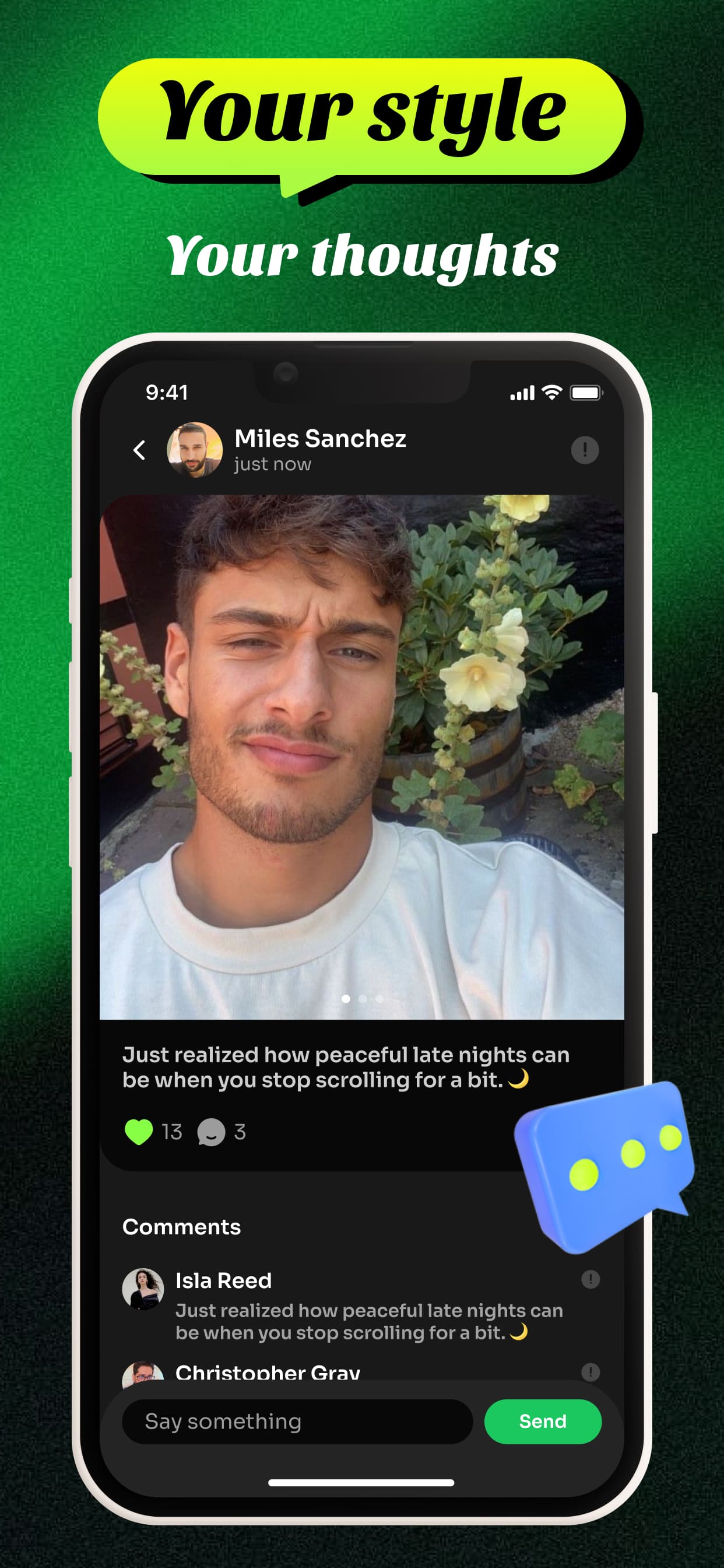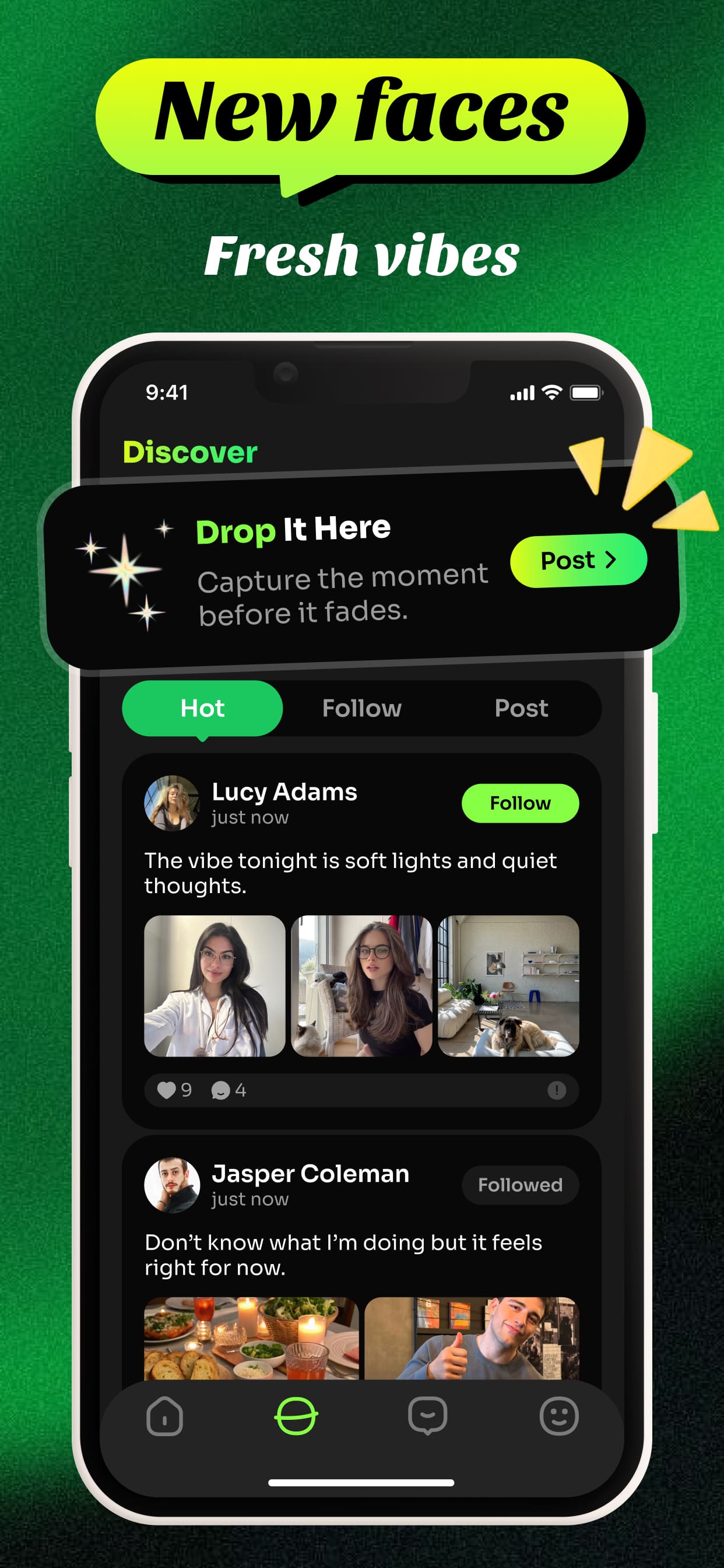 Post updates, go live to share real-time experiences, and engage with a community that values meaningful connections.